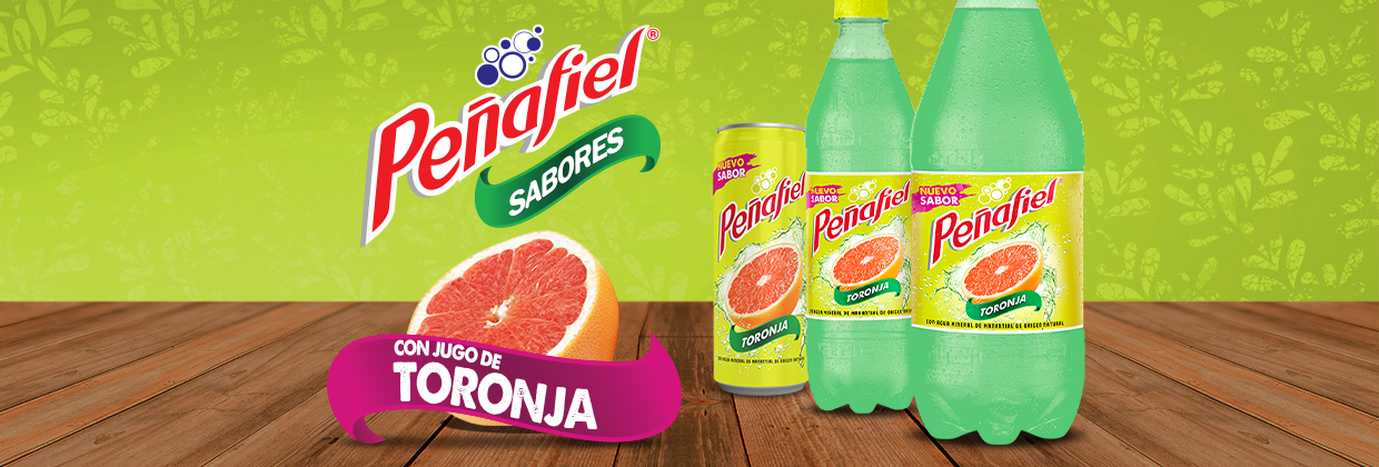 Las nuevas Naranjada, Limonada, Toronjada, Fresada y Piñada Peñafiel® son hechas a base de agua mineral de manantial con jugo para dar sabor, ayudándote a sentir más ligero y saludable.